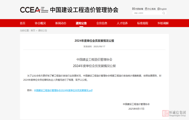 2024年度全國造價咨詢百強(qiáng)企業(yè)公布 | 北京恒誠信蟬聯(lián)全國前十